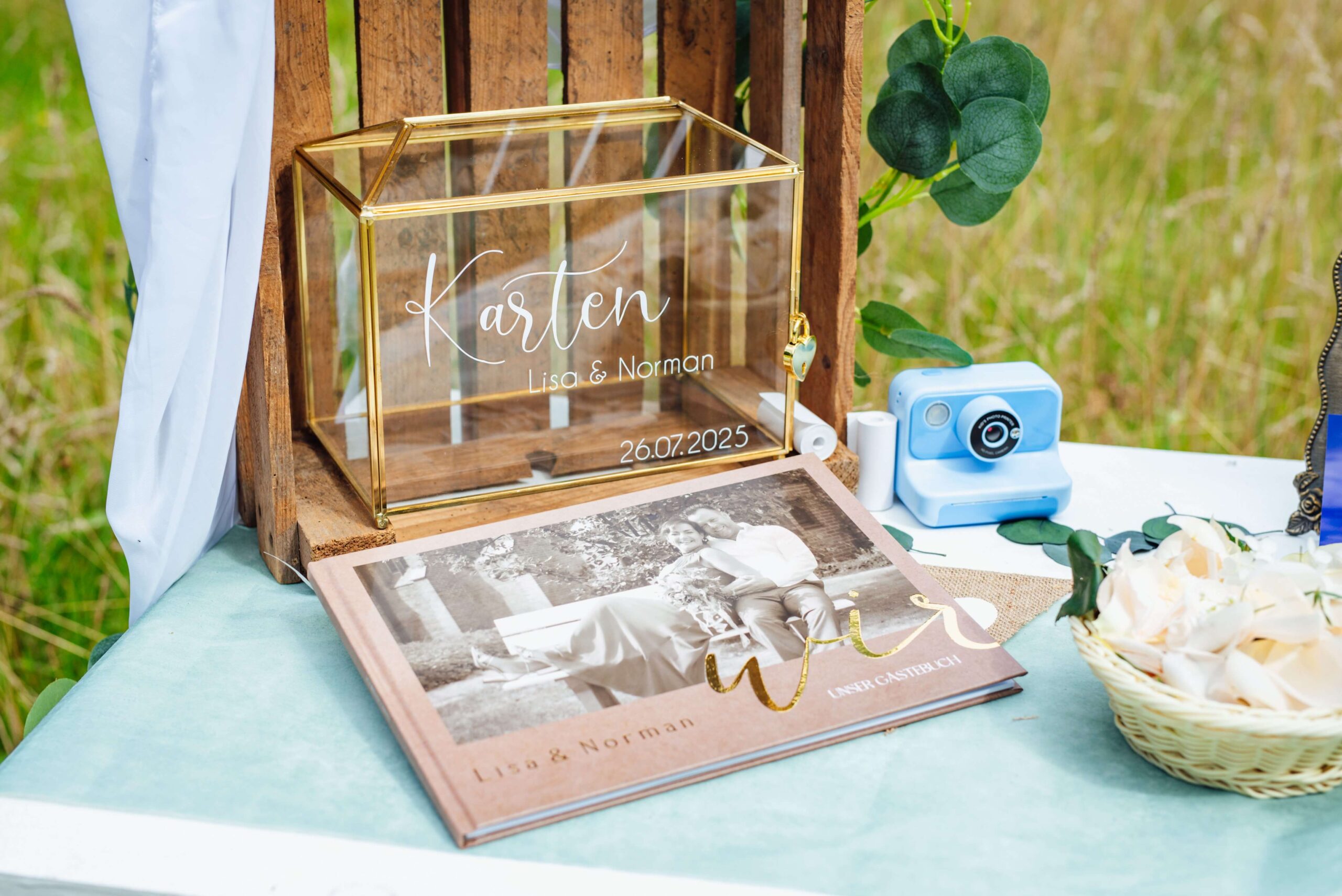 Mit Namen und Datum personalisiert, wird die Box zu einem besonderen Detail eurer Feier.