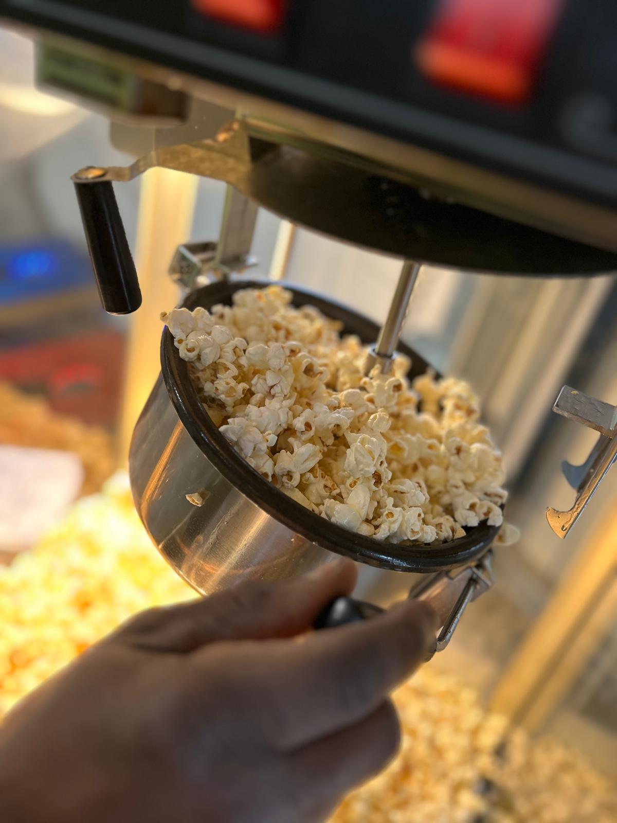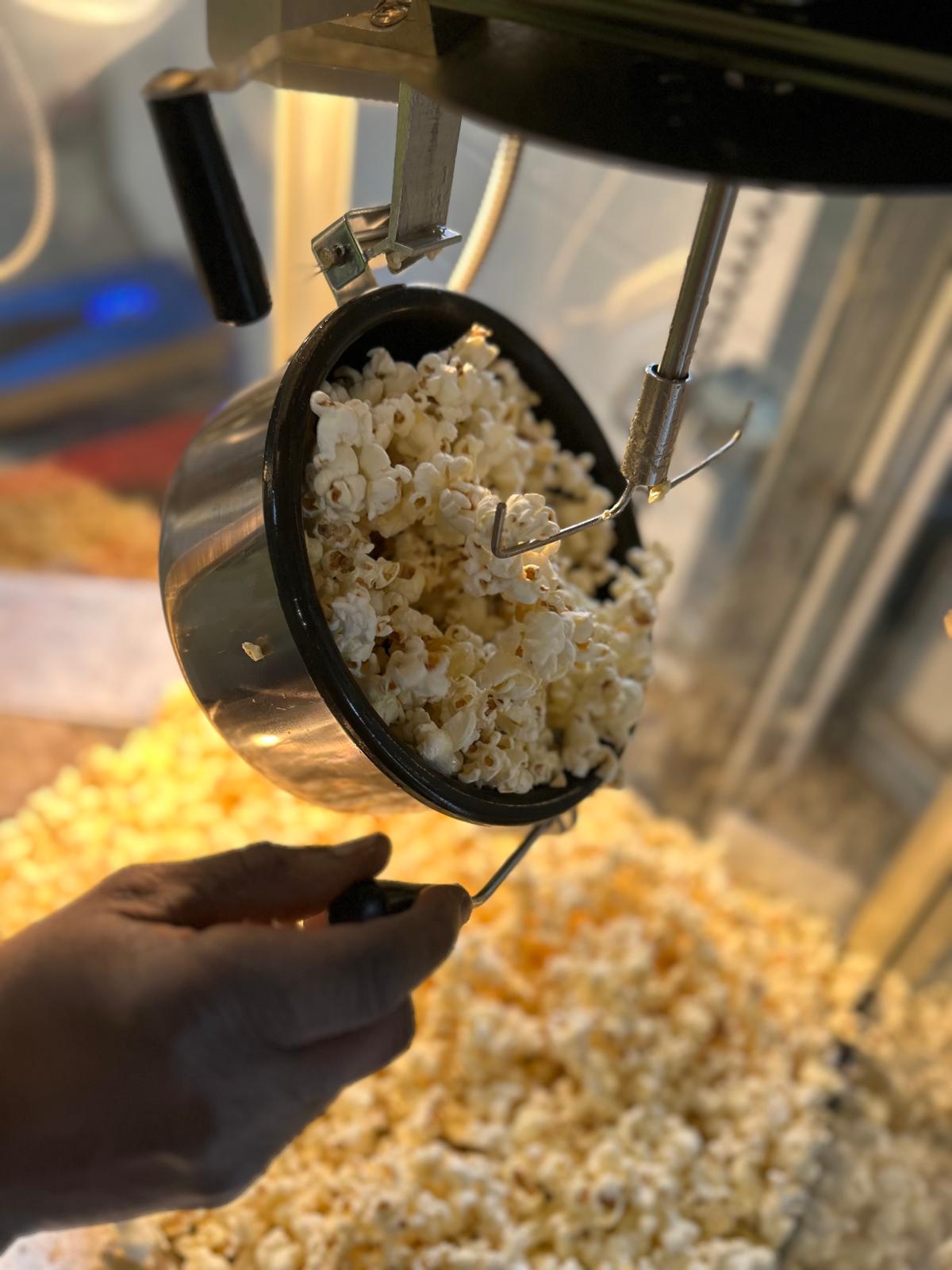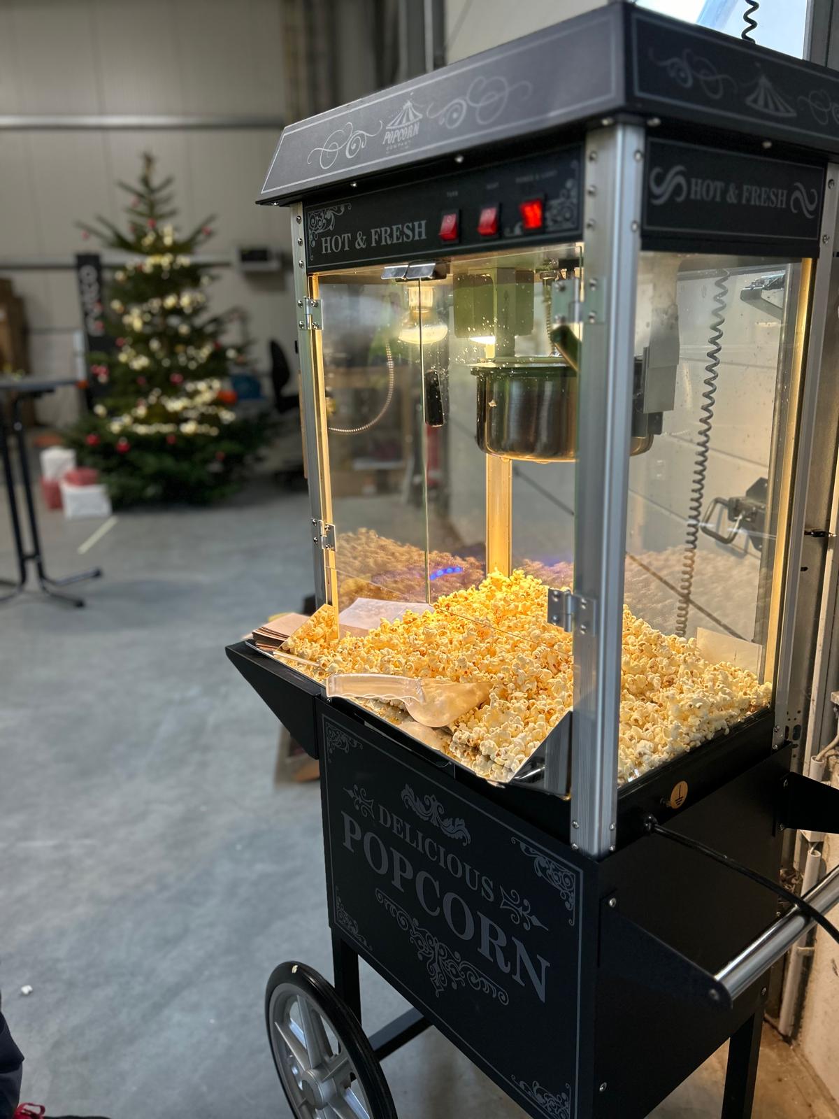 Eine klassische schwarze Popcornmaschine – für jeden Anlass frisches Popcorn. Mache dein Event zu einem besonderen Erlebnis, ob für Kindergeburtstage, Hochzeiten, Firmenfeier oder Vereinsfesten. Ideal für Promoaktionen, Mitarbeiter-Events aber auch für private Feiern leckeres und frisches Popcorn. Professionelle Popcornmaschine, die leicht zu bedienen ist. Bei der Buchung sind alle Zutaten, Zubehör und Reinigung inklusive.